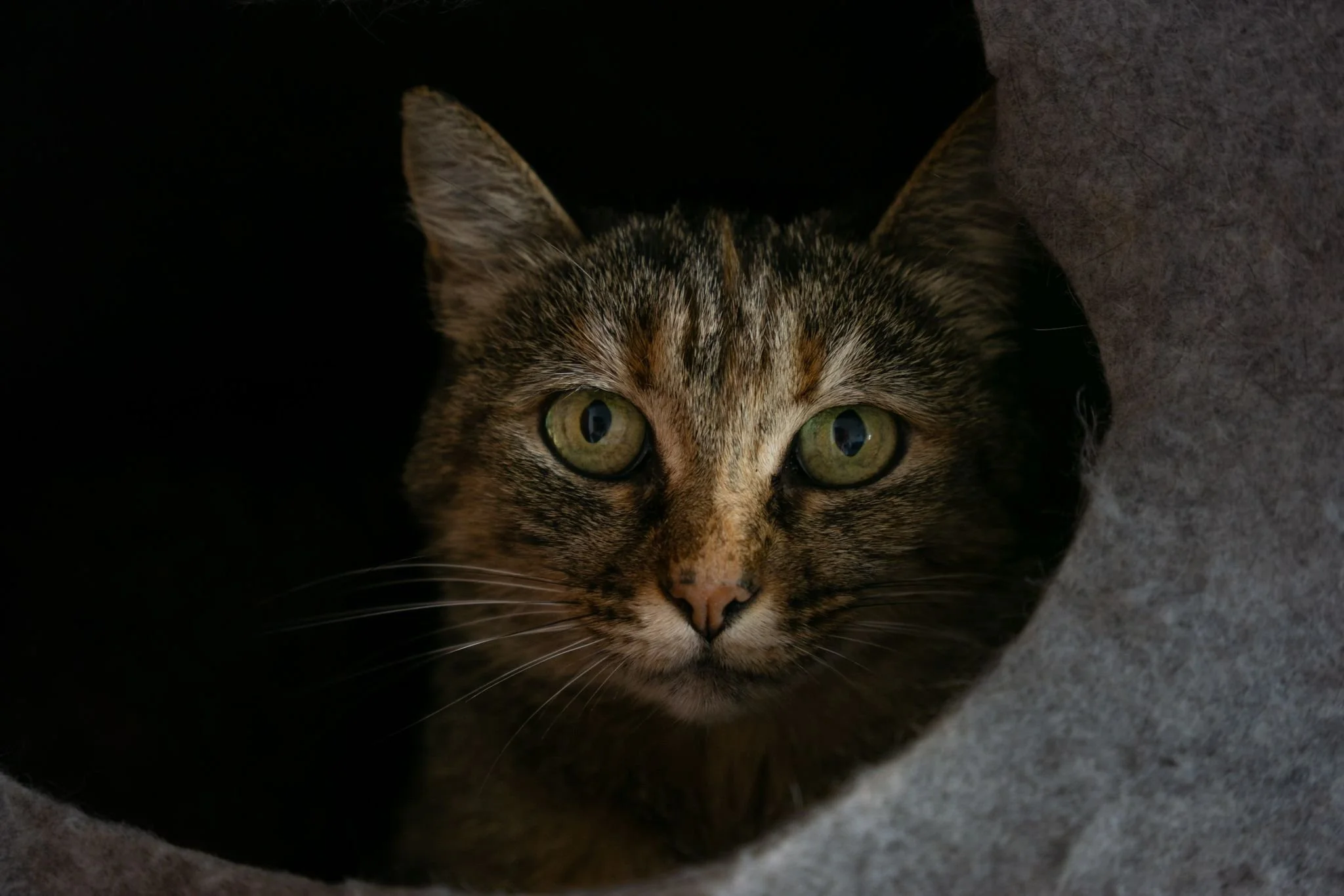 Appena arrivati, gli abbiamo lasciato i giusti tempi e spazi, impaurito e diffidente é passato dal trasportino, lasciato aperto, al riparo di un mobile vicino, ma già, in capo ad un paio d’ore, gironzolava per casa, esplorandola.